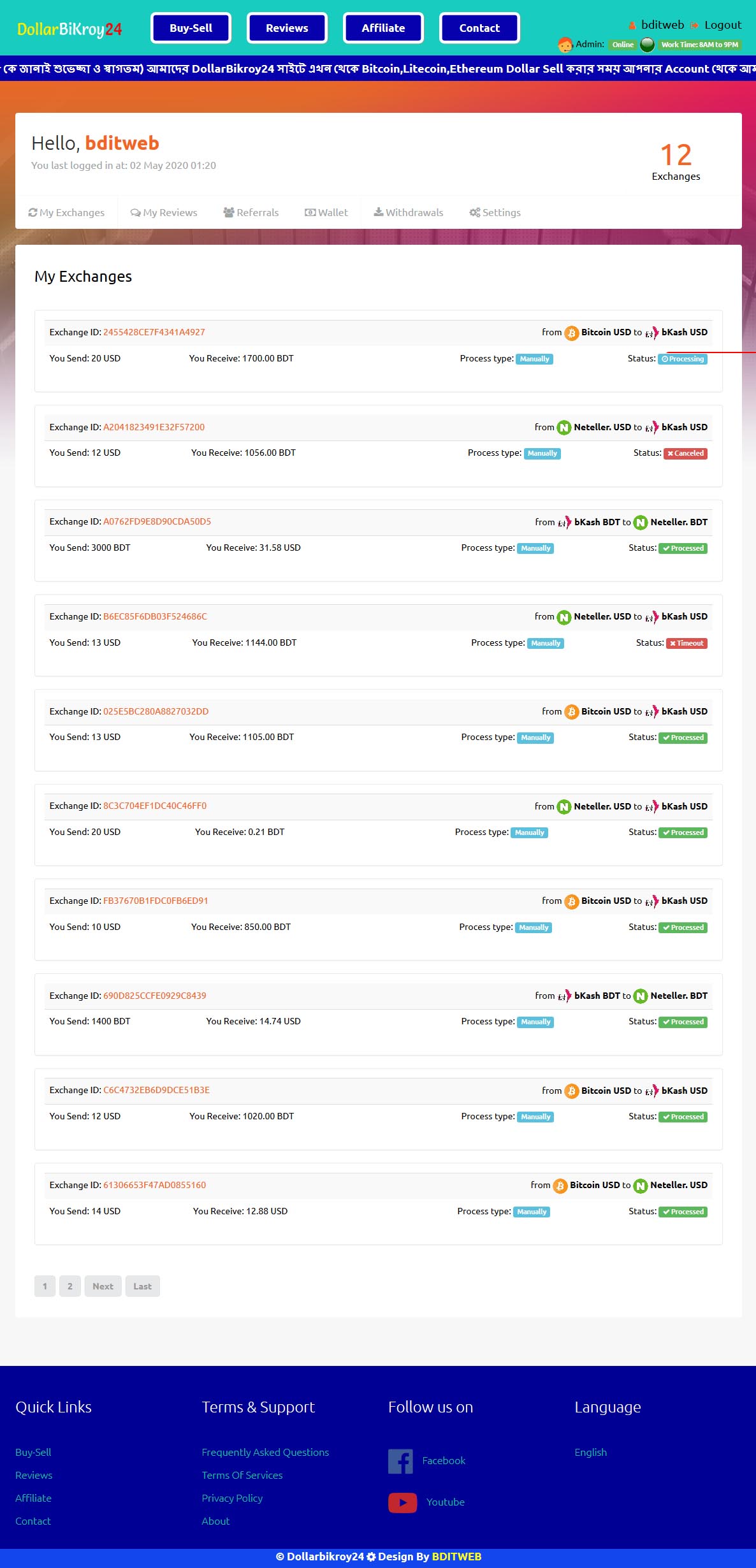 DollarBikroy24.Com is Dollar Buy Sell, Exchange and Online eWallet Website, Here you Can Buy, Sell, Exchange, Stoke, Deposit, Send, Receive, Withdraw your Money.