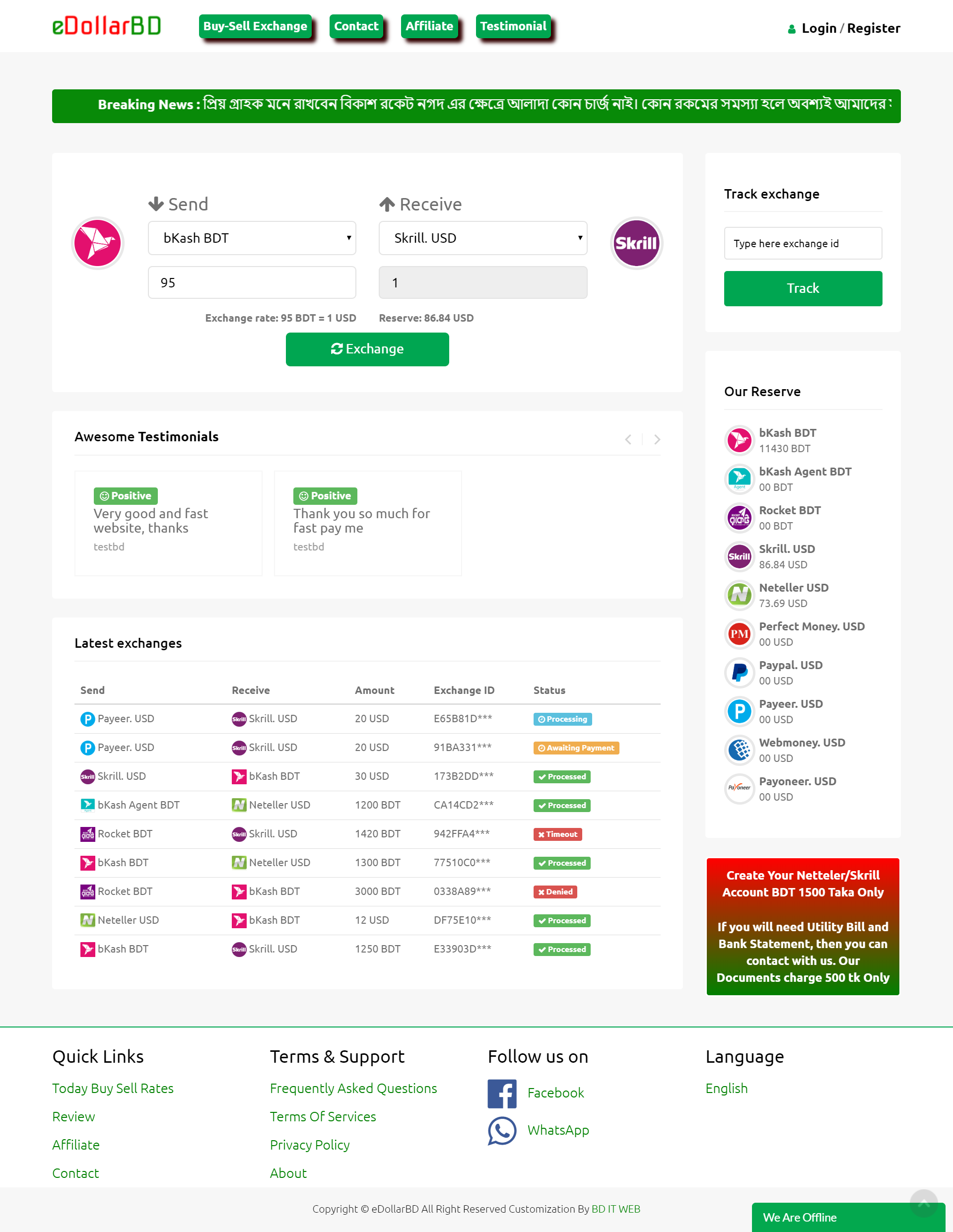 eDollar-bd.Com is Dollar Buy Sell, Exchange and Online eWallet Website, Here you Can Buy, Sell, Exchange, Stoke, Deposit, Send, Receive, Withdraw your Money.