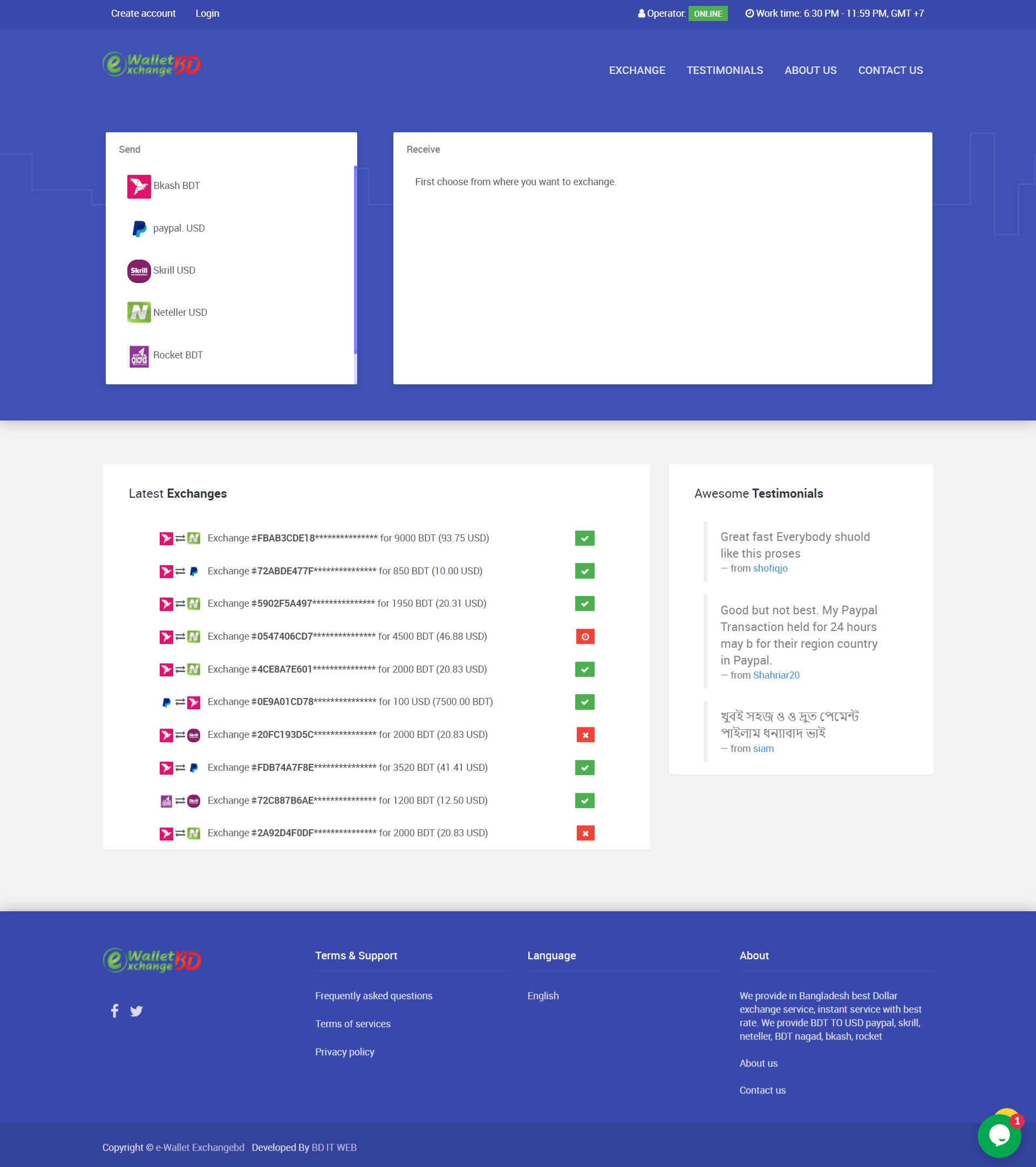 e-Walletexchangebd.com is a Dollar Exchange Website, Here you can Exchange bKash, Rocket, Nagad, Paypal, Skrill and Neteller.