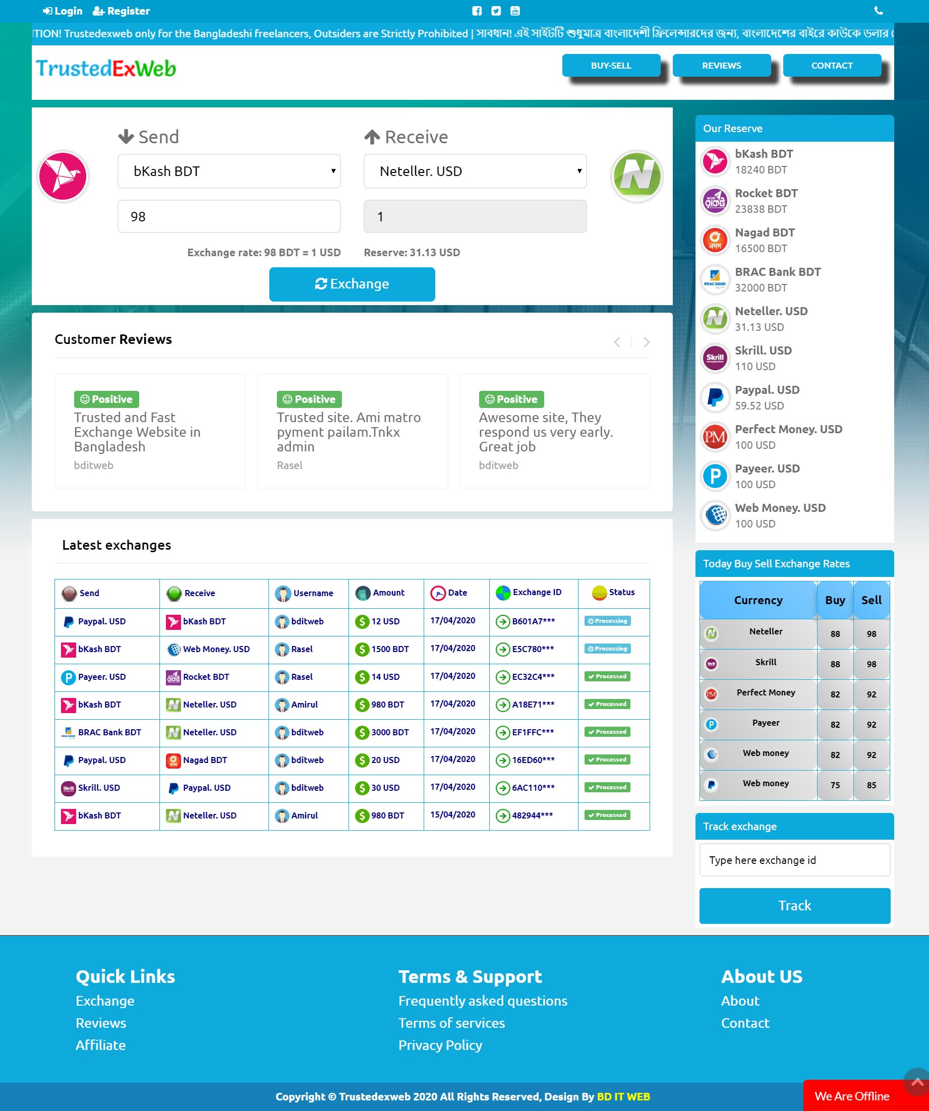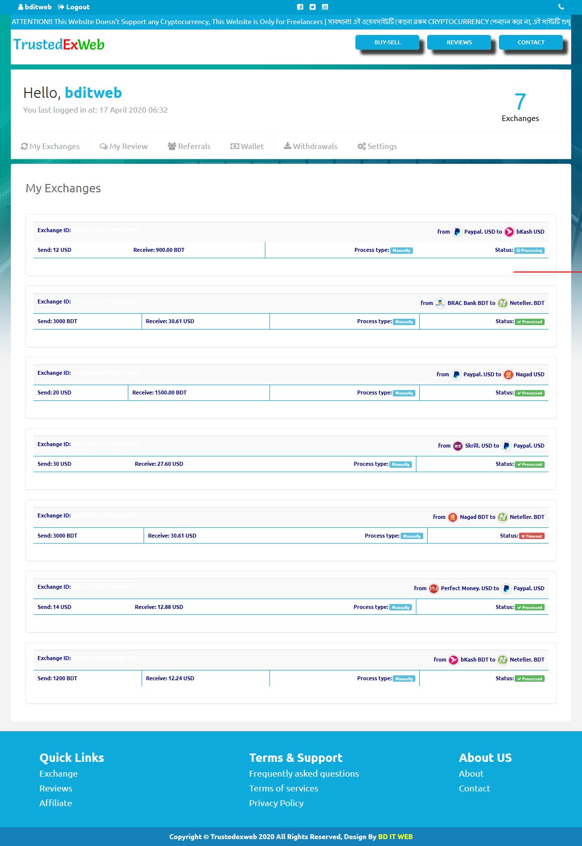 TrustedExWeb.Com is a Full Responsive and Unique Dollar Buy Sell, Exchange and Online eWallet Website, Here You Can Buy, Sell, Exchange, Stoke, Deposit, Send, Receive, Withdraw your Money. We Completely Design and Customize of TrustedExWeb.