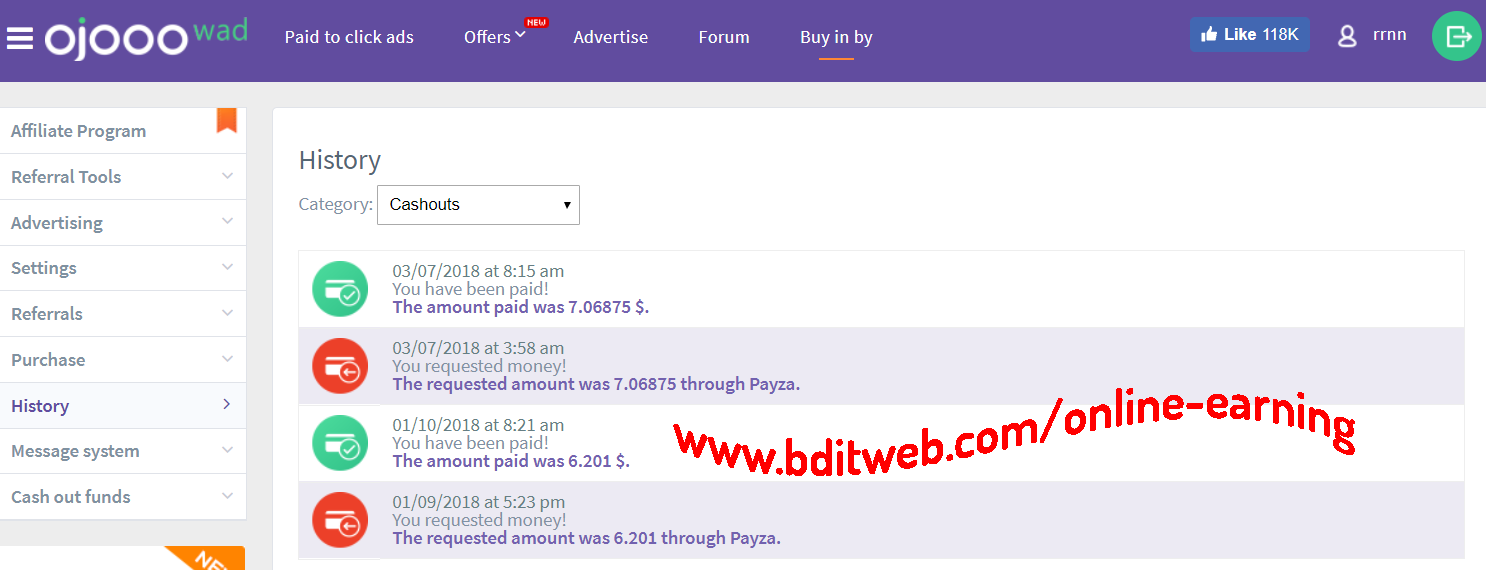 Wad.Ojooo is PTC website in which you can earn money by simply viewing the advertisements. You can earn from $0.001 to $0.03 per advertisement you view for 5 seconds to 60 seconds. You can view around 30+ advertisements everyday. Ojooo wad is a famous PTC site. Earn money in really easy way. You can also earn money by watching Ojooo Videos, making simple tasks or offers.